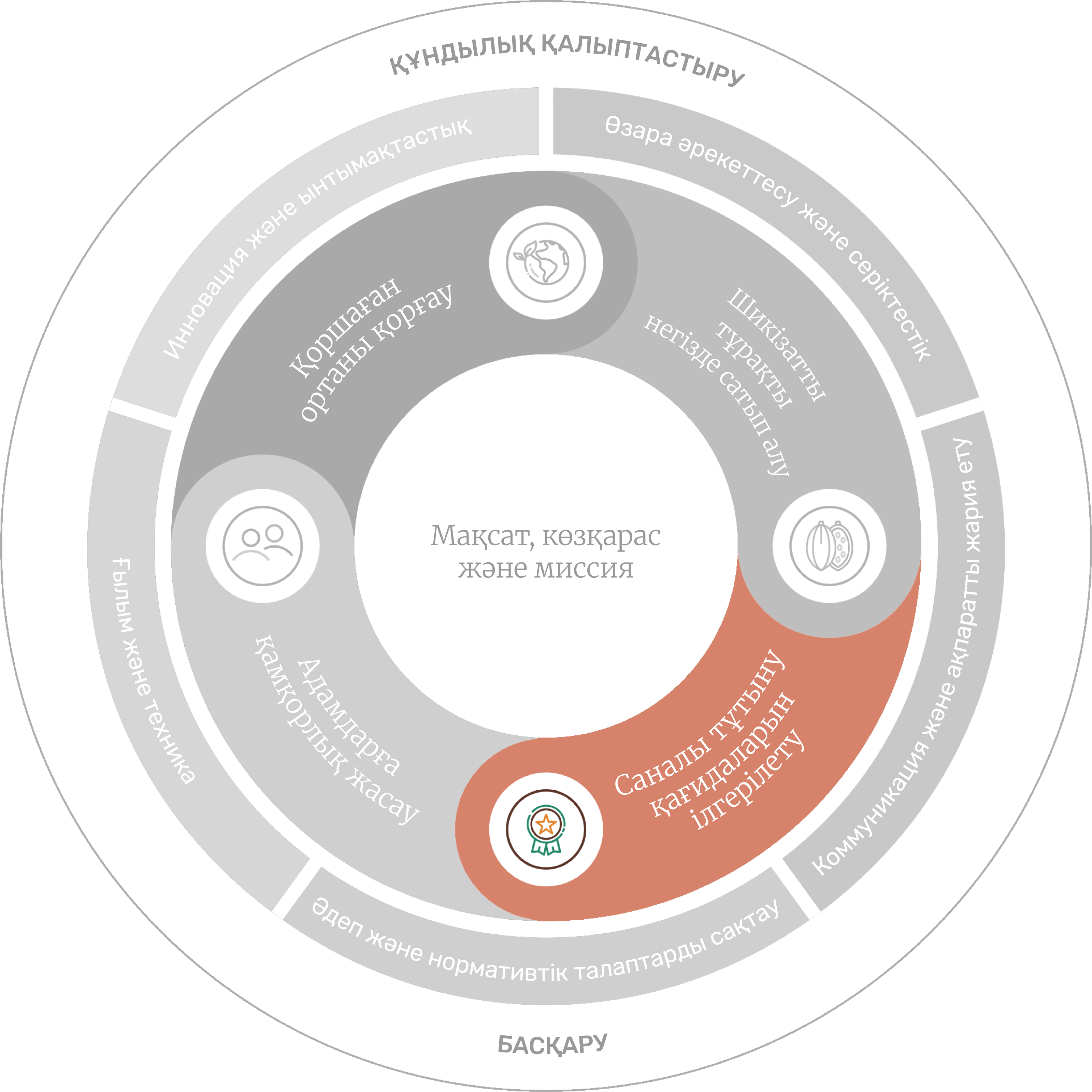 Біз бизнесті жауапкершілікпен дамыта отырып, құндылық тізбегінің барлық кезеңдерінде – бастапқы шикізатты алудан бастап соңғы өнімді тұтынуға дейін – өз әсерімізді және мүмкіндіктерімізді ескере отырып, тұрақты дамуды толық қамтамасыз етуге ұмтыламыз.