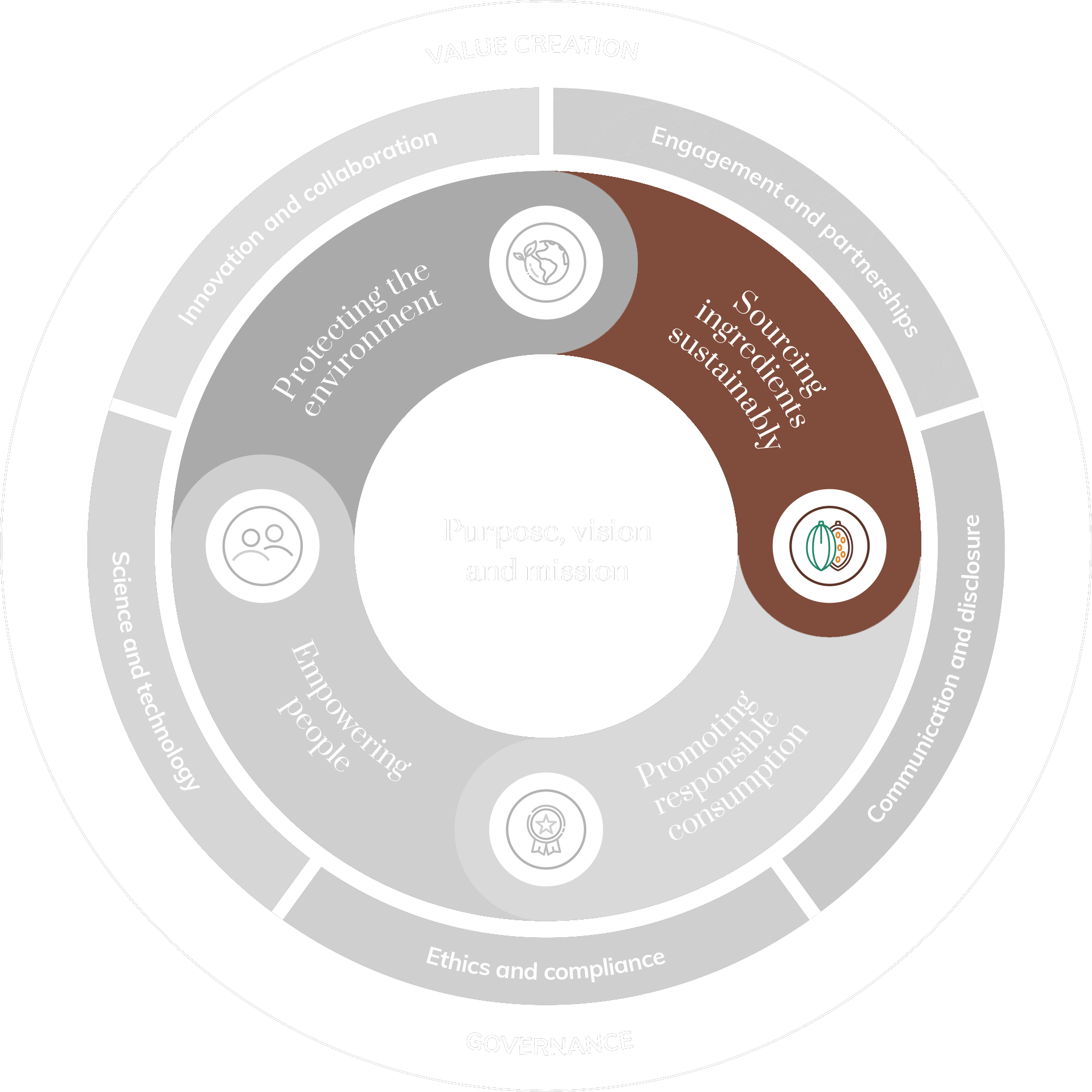 Our progress is rooted in our sustainability framework, focusing on four core sustainability pillars: protecting the environment, sourcing ingredients sustainably, promoting responsible consumption and empowering people. We make progress on these pillars by investing in innovation and technology, enhancing transparency and compliance, as well as fostering a culture of collaboration.